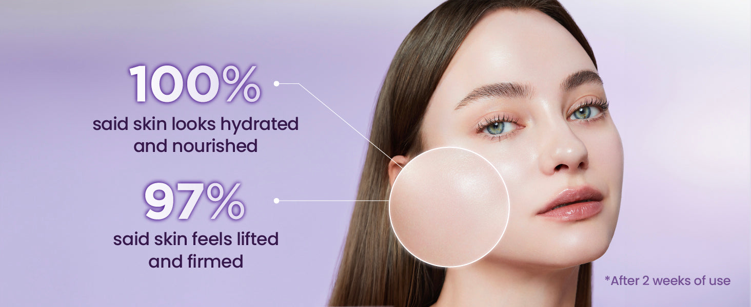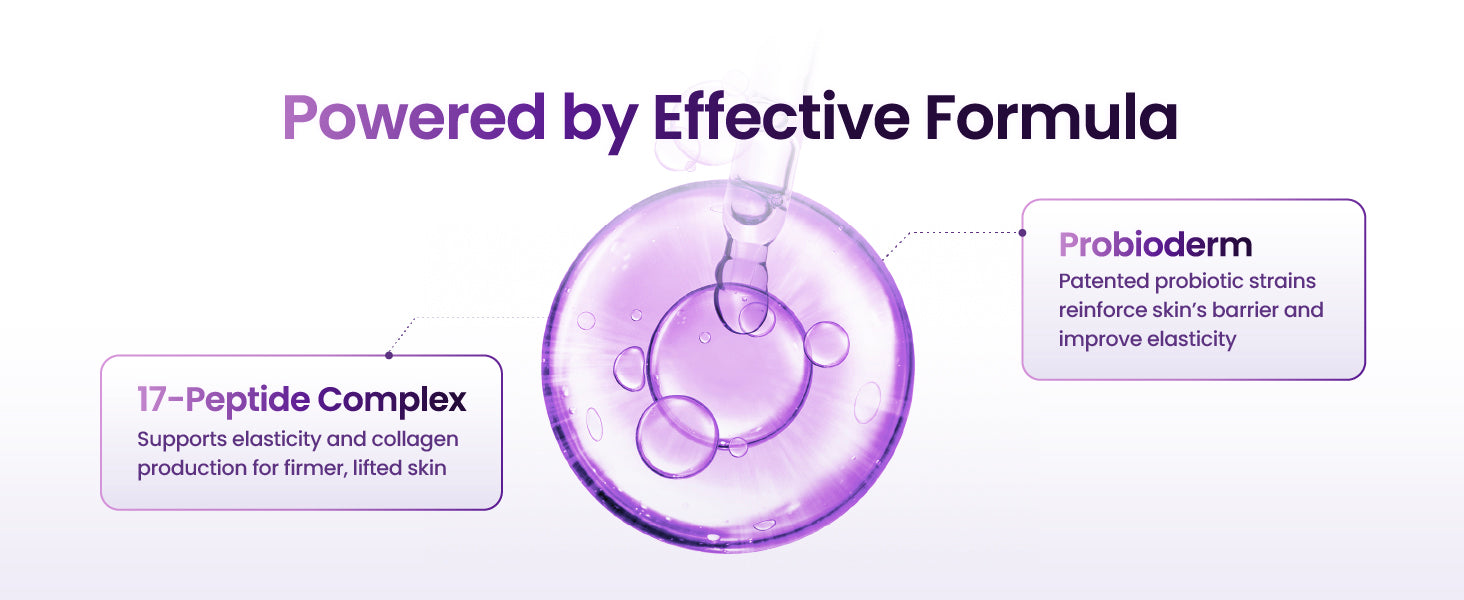 The synergy of peptides + probiotics + 3D Matrix Technology helps improve skin’s structural support and restore facial contours, while emollients keep skin supple and comfortable all day.